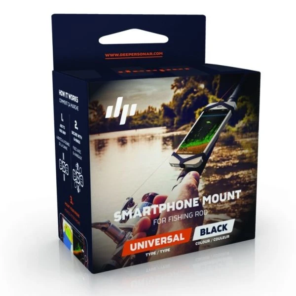 Deeper Phone Holder er en holder for å feste smarttelefonen til fiskestangen. Smarttelefonen sitter dermed godt fast slik at du både kan betjene telefonen og fiskestangen samtidig. Myke fester av silikon gjør at telefonen sitter godt. Hold tommelen på telefonen under kast.