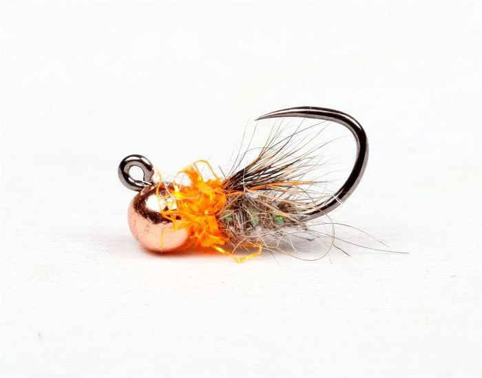 Ideen med designet på Grayling Slayer er å lage en liten flue på en større krok som synker raskt ned til fisken takket være det overdimensjonerte tungstenhodet. Med mylar ribb og oransje krage har denne nymfa solide triggere for å vekke opp treg fisk i kaldt vann. Dette er en typisk flue for fiske etter harr utover høsten og inn i vinteren.