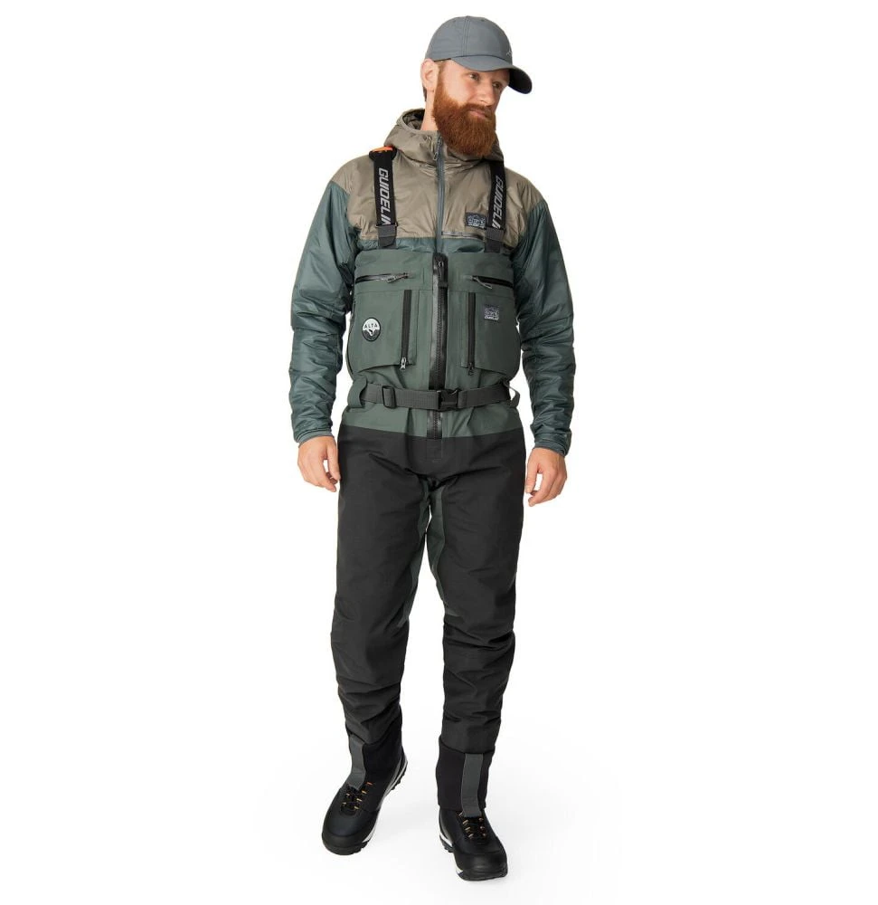 Overdelen av vadebuksen er justerbar med en elastisk snor for å holde på varmen innvendig ved behov. TIZIP ® MasterSeal glidelåsen i front er et kvalitetsstempel i seg selv og fungerer kompromissløst i år etter år og gjør buksene enkel å ta av og på. Romslige brystlommer på hver side med rikelig plass til fluebokser, utenpå lommene finner du vår smarte Tool Garage™ som åpnes med en vertikal glidelås. Her er det plass til peang, klippere og annet som skal være lett tilgjengelig under fisket. Håndvarmerlommer foret med fleece kommer godt med på kjølige dager, disse er utstyrt med YKK Aquaguard® glidelåser som er vannavisende.