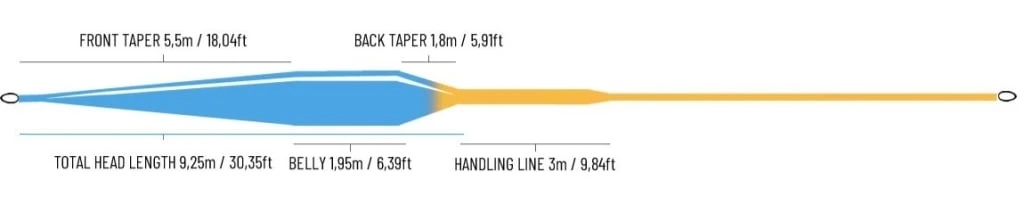 Bullet 2.0 har en klumplengde på 9,25m og en total lengde på 30m, en ideell kombinasjon for fiske på medium til lang distanse. Den kraftfulle front taperingen på 5,5m leverer kompromissløse presentasjoner av fluer i alle størrelser. Bellyen har vekten konsentrert bakover som gjør linen meget velegnet for vannkast. Baktaperingen er på 1,8m som er tilstrekkelig for god stabilitet ved lange kast samtidig som man opprettholder gode egenskaper for underhåndskast. Baktaperingen går over i en 3m lang handling line, som gir god slitestyrke på den mest utsatte delen av snøret og stabilitet i luften ved lengre kast. Skytelinen er tynn for minimal friksjon og gode skyteegenskaper. Fargen på skytelinen går halvveis opp på baktaperingen og gir en god indikasjon på hvor mye line du trenger å kaste med utenfor stangtuppen for optimal oppspenning av stangen. Kommer med løkke i begge ender og id-merking i front.