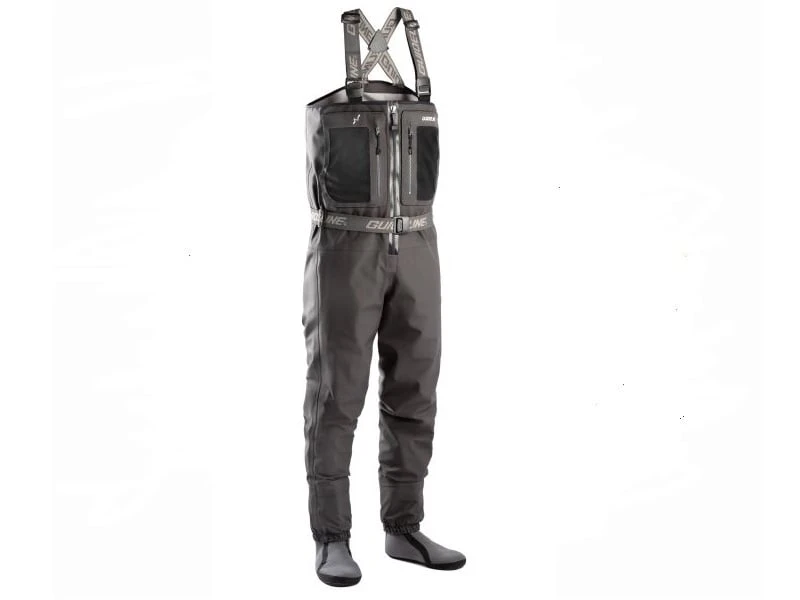 Den vanntette Master Seal glidelåsen i front er levert av det tyske firmaet TIZIP®. Disse har overlegen fleksibilitet og styrke. Gir fin fleksibilitet og gjør det enklere å komme seg inn og ut av vadebuksa. Guideline Laxa 2.0 ZIP har to store brystlommer med mesh i front og solide vertikale glidelåser. Bak lommene er det varmelommer foret med fleece. Justerbare seler og elastisk vadebelte sørger for gode tilpasningsmuligheter, beltehempen bak har to ulike høyder.