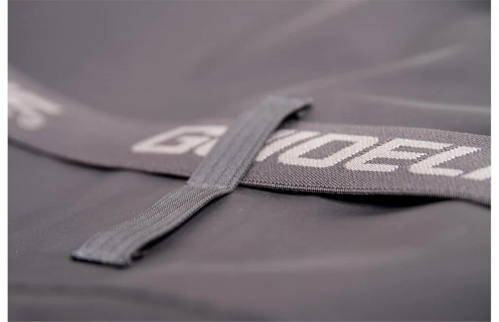 - Grusbeskytterne er laget i et solid stoff med gummiforsterkede stretch bånd.