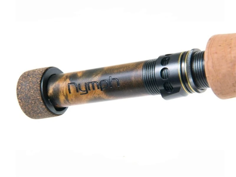 - Down-locking snellefeste for perfekt balanse og lav svingvekt. Premium tre innlegg med inngravert Nymph logo. Metallkomponenter er hard anodisert i en matt finish for å unngå reflekser fra solen og god slitestyrke.