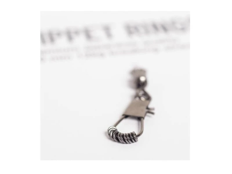 Leveres med praktisk swivel som festes på pin on reel o.l. som oppbevarer ringene sikkert og lar deg knyte på fortommen før du tar ringen av swivelen.