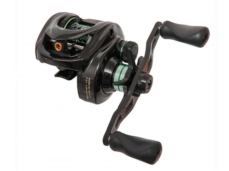 Designed for finesse and vertical fishing tactics, the GUNKI CHOOTEN BC 100 CUT features a shallow spool that will house low-diameter lines and braid. Designed with a high ratio this reel claws back 75 cm per turn which is impressive for its size. Versatile enough to cast lures from 4 to 80g! Precisely engineered and fitted with top quality bearings and excellent reel grease the mechanism runs smooth and fast especially under tension. Features a quality line lay system that lays the line evenly right across the spool. This reduces friction on the next cast as the line can peel off smoothly. The Monobloc body and solid drag system (with carbon washers can be counted on to cope with any situation. Every detail has been thought to maximise performance. Even the handle is made from low weight carbon and features a small ring with the line diameter marked on it. Handle on the left. Retrieves 75cm/turn. Drag power: 9kg. Plus points !! – Low-profile aluminium body – Composite carbon flanges – Light and durable – Exceptionally smooth – Hi-retrieve ratio – High precision stainless steel bearings – Infinite anti-reverse – Perforated shallow aluminium spool – Multidisk carbon fighting drag (carbon washers), powerful and smooth (9kg) – Centrifugal (zero friction) casting drag. External adjustment knob – Handle on the left – Ergonomic “easy grip” handle