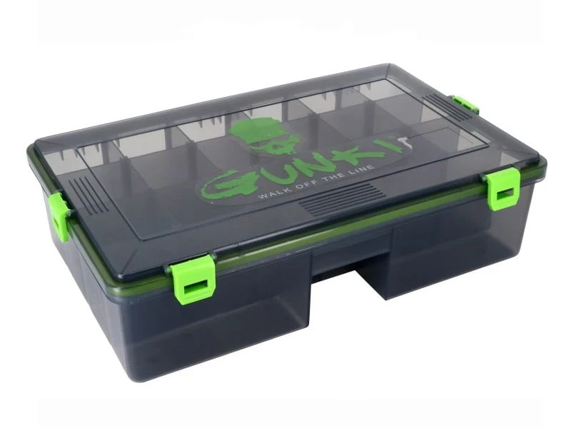 Lure boxes featuring modular compartments and a waterproof seal for optimal protection against the rain. The seal also helps the boxes to float which can prove handy if fishing from a float tube or canoe. The lid is held on by four clips to avoid accidental opening. Large, deep box for big lures. Smoked grey colour limits the damaging effects of UV rays on your lures and plugs.