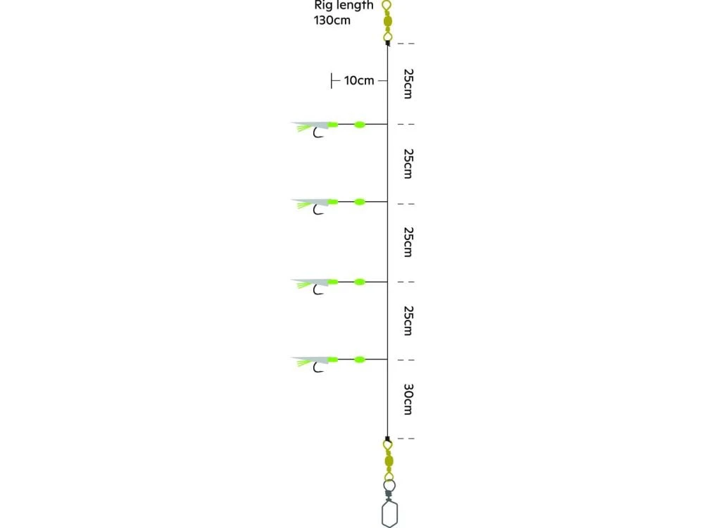 Trembler Sabiki Rig har naturtr* fiskeskinn kombinert med flash. Det er den perfekte hekle for dem som jakter etter sild, makrell og andre småmunnede fisker på grunt vann.