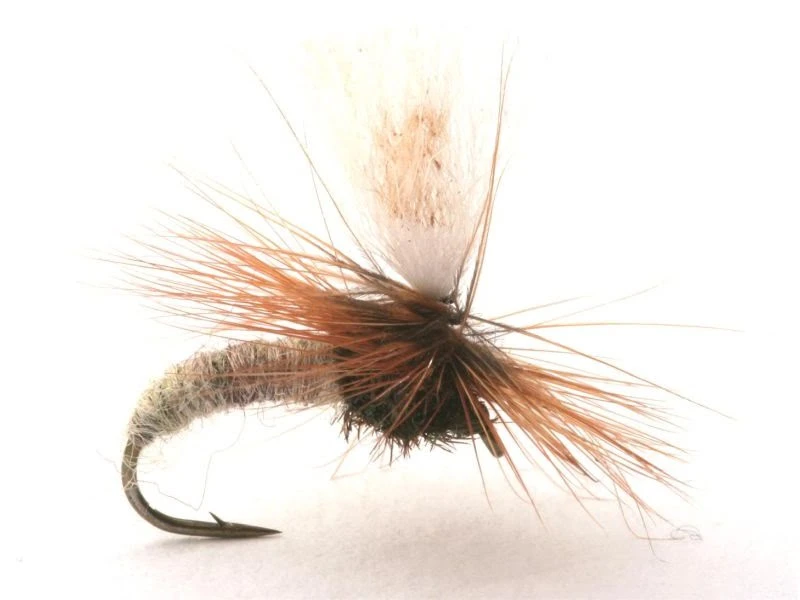Dette er en klassiker som fungerer like godt i skauen om sommern som i harrelva på høsten. Velg en størrelse som passer til de insekter du ser, er det lite liv så sett på en stor og lokk fisken opp!