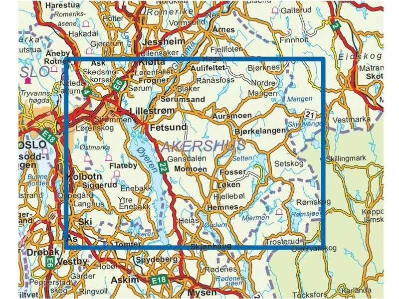 Topo 3000 er et detaljert kart som dekker over 3000 km2. Her finner du turer i områder rundt Skedsmo, Sørum, Fet og Aurskog-Høland. Med andre ord – de store kulturlandskapene og skogområdene øst for Glomma mot riksgrensen. I område finner du topper, turer, stier og utsikstpunkter som Grønliautsikten, Hotvettjern, Hellefjellet, Taterstigen, Bjønnåsen, Svanestien, Høgåsrunden, Tjuvstuåsen og St. Hansåsen.