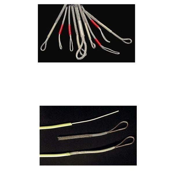• Tre gripepinnen inn i løkka, og press den fleksible plasthylsa som allerede sitter på strømpa, inn over spissen på fluesnøret, slik at kanten dekkes.