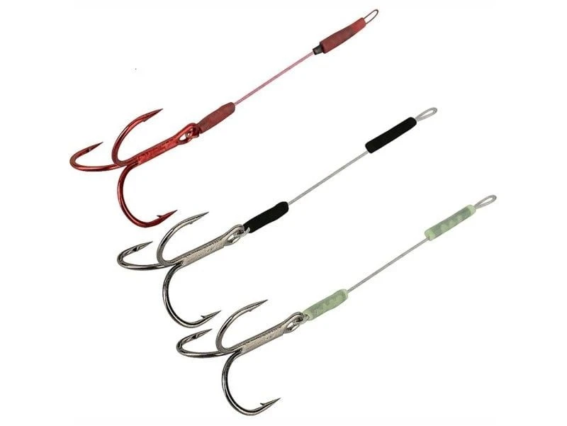 Singel Stinger med Savage Gear Y-treble krok. Krympet på en coated Carbon49 wire. 2 stk Gunsmoke og 1 stk blood red stinger per pakke.
