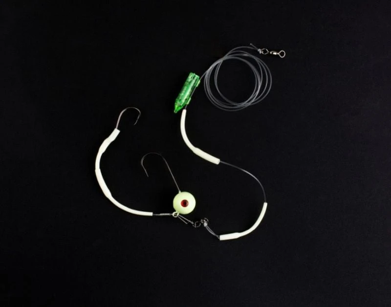 Denne geniale agnfiskeriggen kombinerer søkke og kroker, og kan brukes både under driftfiske, slowtrolling og ikke minst jigging. Her trengs ikke noe ekstra søkkevekt, det er bare å egne opp med hel eller halv agnfisk, surre godt med elastisk surretråd og komme i gang med fiske. Alle havets jegere faller for Fireballen, som er utstyr med både selvlysende gummislange og blinkende Waterlight, men særlig lysing og lange er svak for dette agnet når det fiskes oppover i vannlagene. L. 170cm/Ø. 1,2mm/1,4mm Krok #11/O